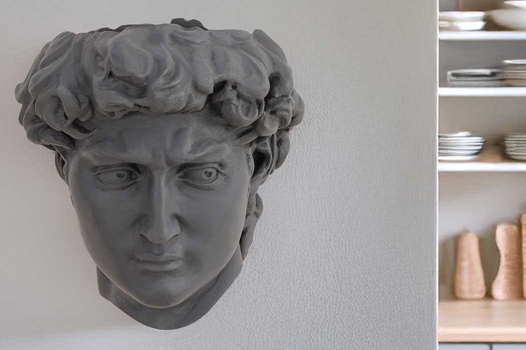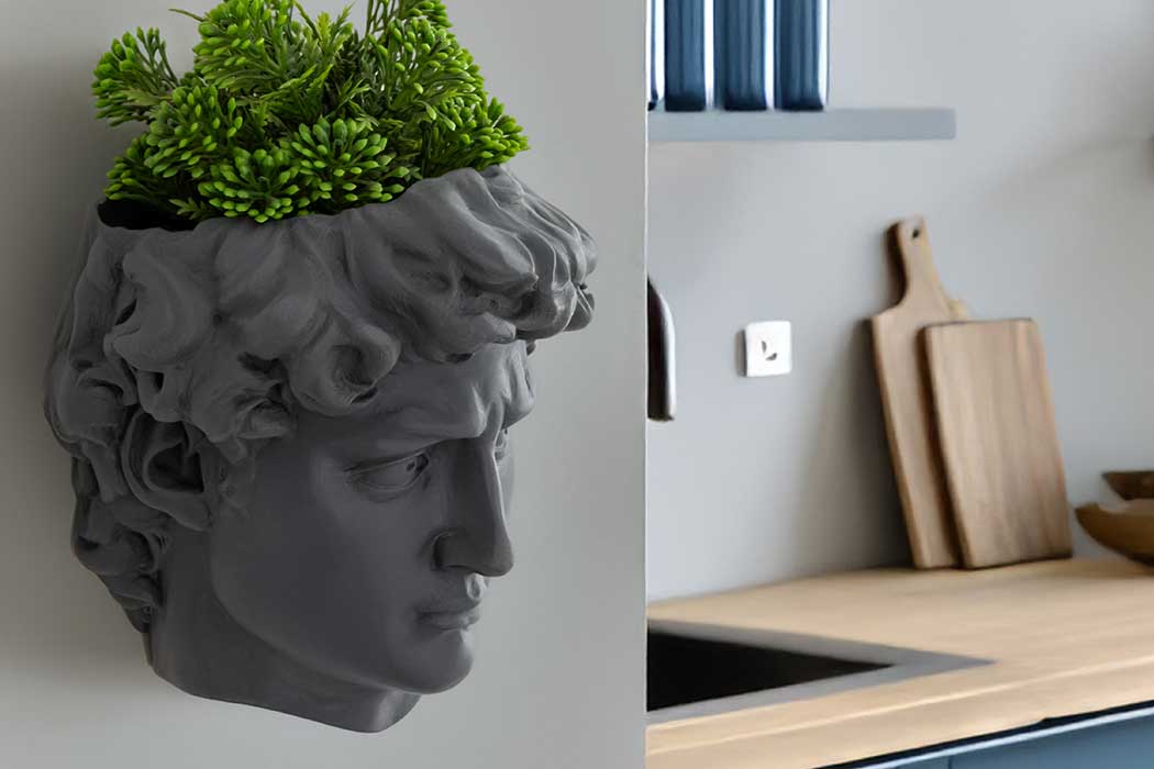 David, finished in cool grey, is re-imagined as a wall-mounted planter perfect for kitchen herbs, succulents or trailing plants. Created from the original David sculpture, he brings a fun yet classic presence to any room.Made from our signature blend of 65% marble dust and durable binder, the planter has a soft, stone-like texture that feels both refined and timeless.