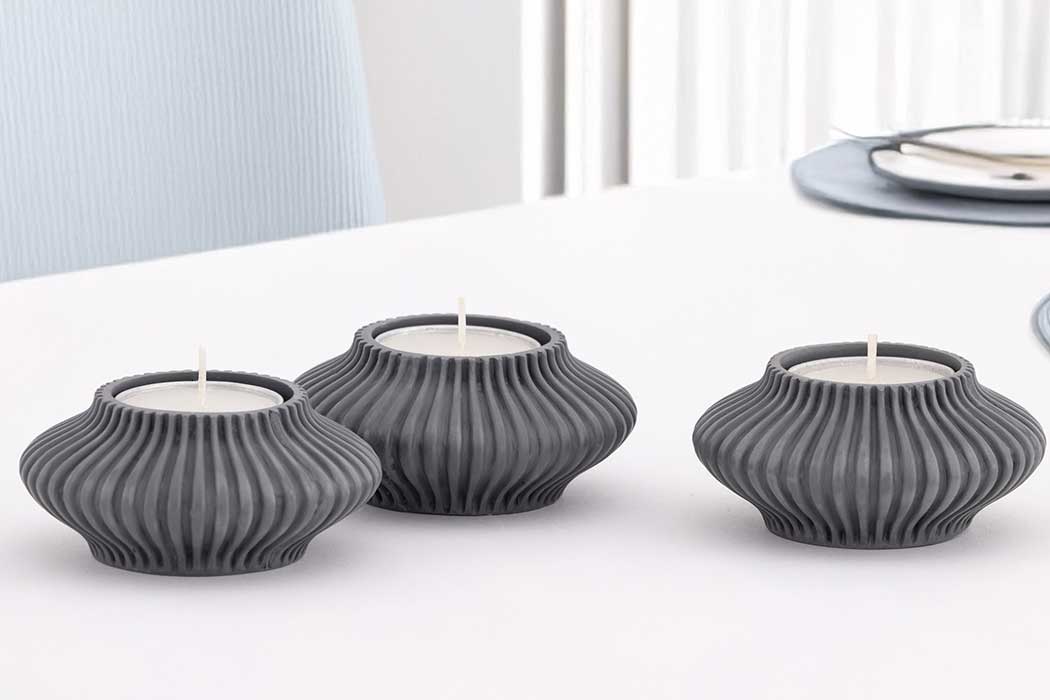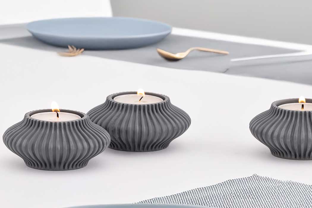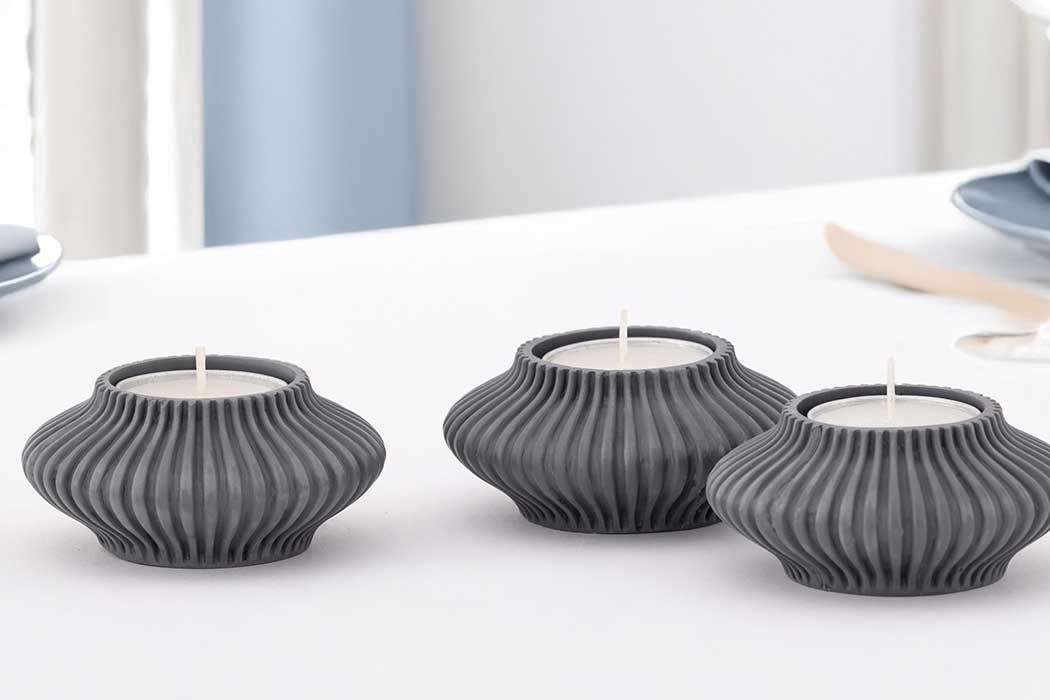 Made from our signature blend of 65% marble-dust and durable binder, each holder has a softly textured, stone-like surface with a solid, crafted feel. Sold as a set of three, these tea light holders are ideal for creating a cohesive display along a dining table, sideboard or window sill.
