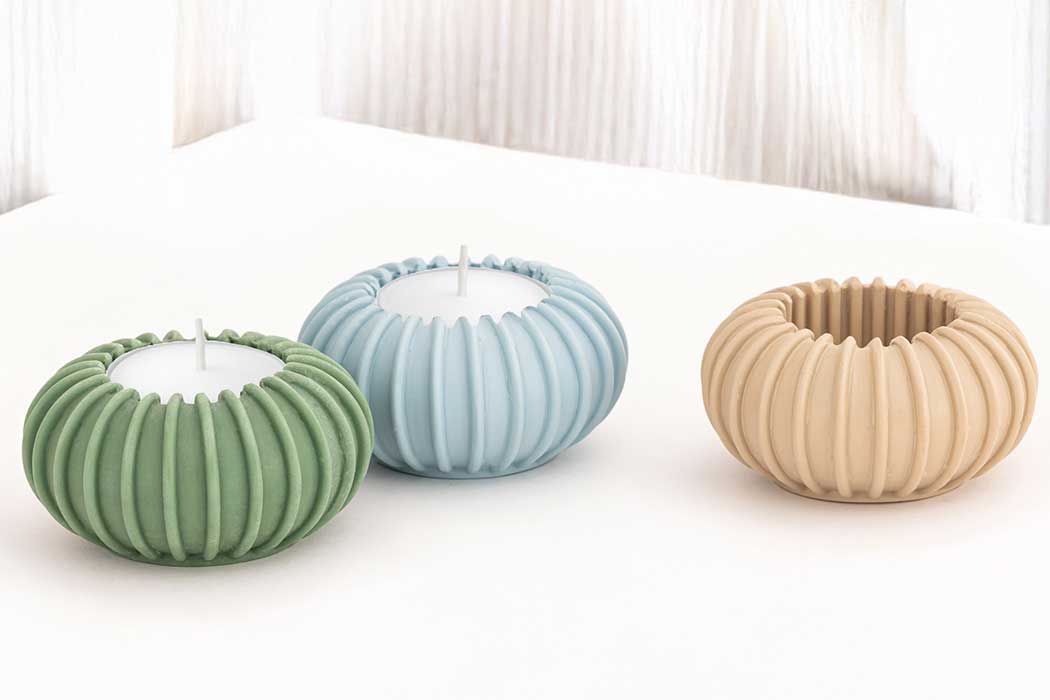 Made from our signature blend of 65% marble-dust and durable binder, each holder has a smooth, stone-like surface with a reassuring weight and a refined, contemporary feel. The ribbed form adds subtle texture while allowing the candlelight to remain the focus.
