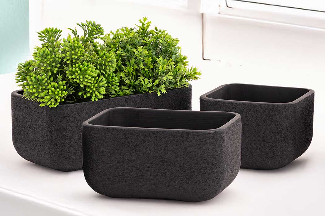 Finished in deep charcoal black, the Marbo Sill Planter Small is designed for window sills, shelves and kitchen ledges, offering a bold, architectural way to grow fresh kitchen herbs. Crafted from our signature blend of 65% marble dust and binder, this stone-effect planter features a deliberately rough-textured exterior that adds depth, contrast and a tactile, hand-finished feel.