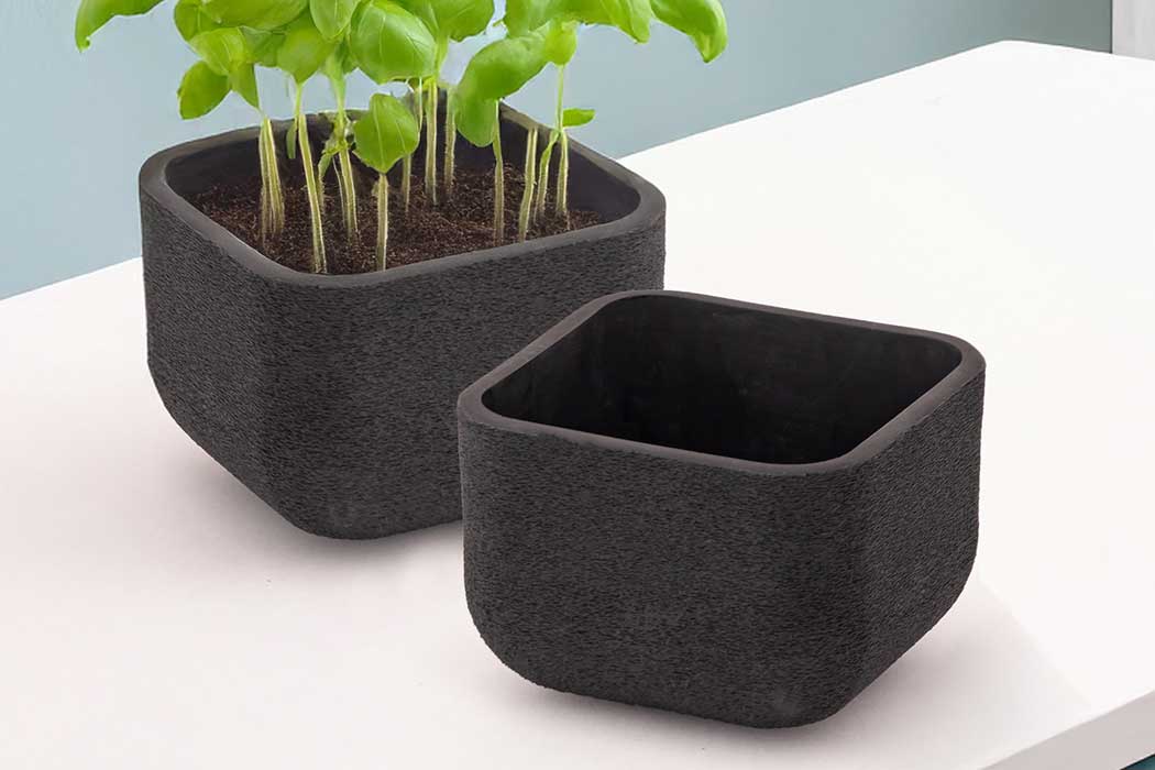 The square form works beautifully for compact herb arrangements, and the internal cavity can hold a standard pot or be planted into directly. Its dark charcoal finish provides a striking backdrop to vibrant greenery, making it ideal for modern kitchens as well as more traditional interiors.