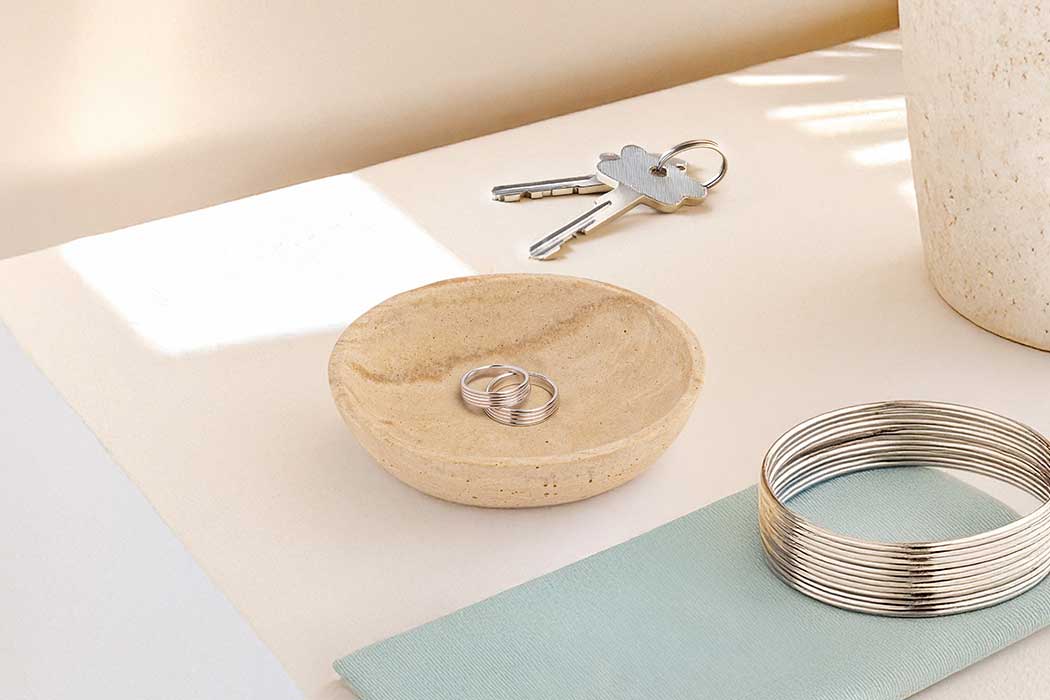 The Trava Pinch Pot Medium brings a refined, tactile quality to everyday rituals. Cast from 65% travertine with a binder, each piece features soft creamy tones with subtle, irregular darker striations, ensuring natural variation and a unique finish.